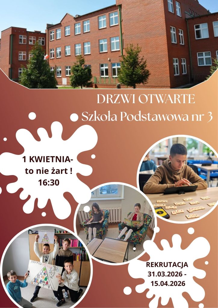 Drzwi otwarte w SP3 przez admin · Opublikowane 28 marca 2026 · Zaktualizowane 31 marca 2026 Już 1 kwietnia o godz. 16.30 zapraszamy na Drzwi otwarte w naszej szkole.