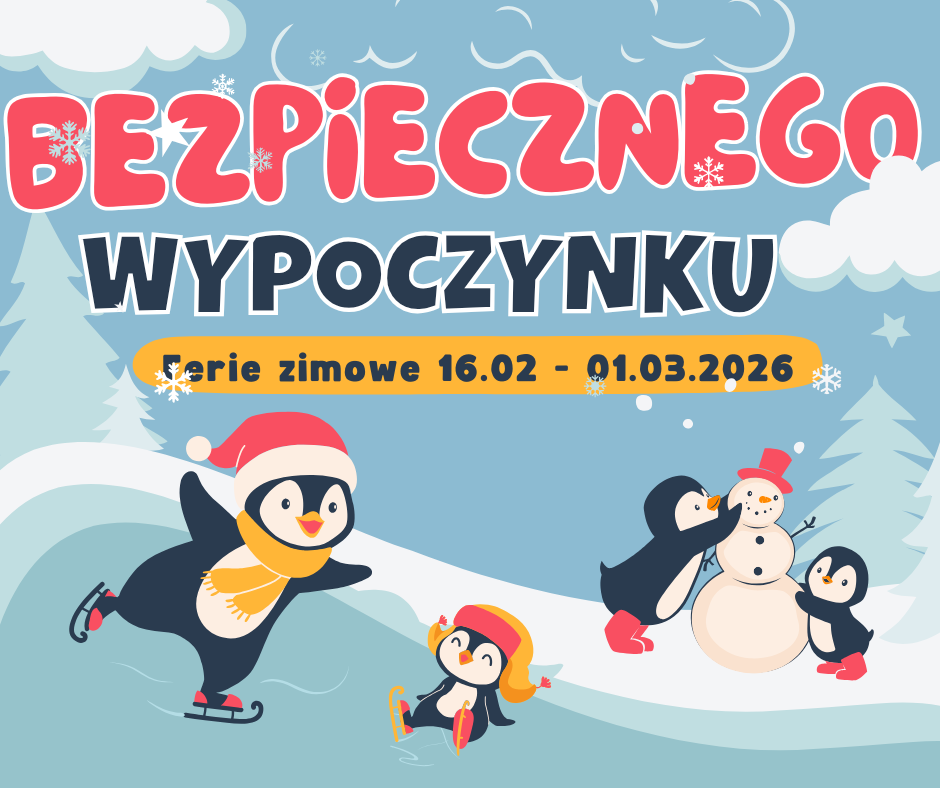 Drodzy Uczniowie! Przed nami czas odpoczynku, zabawy i zimowych przygód. Pamiętajcie jednak, że najważniejsze jest bezpieczeństwo!